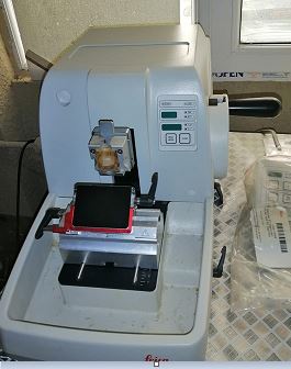 Masaüstü rotorlu mikrotom.