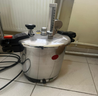 4. Steam Autoclave CV-EL 12 L GS 125/140°C. thermostat controlled. Capacity 12 liters.. with instrument tray and tripod