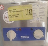 Bu cihaz ultrasəs hamamı/ultrasəs yuma cihazları seriyasıdır. Bu cihaz su və ya digər mayelərdə yüksək tezlikli ultrasəs dalğalar yaradır; bu dalğalar kavitasiya effekti sayəsində materialın səthini təmizləyir və mayedə hissəcikləri daha yaxşı qarışdırır, deqazasiya üçün də istifadə olunur.Temperatur (bəzilərində qızdırıcı): 30 °C–80 °C aralığında tənzimlənə bilər.